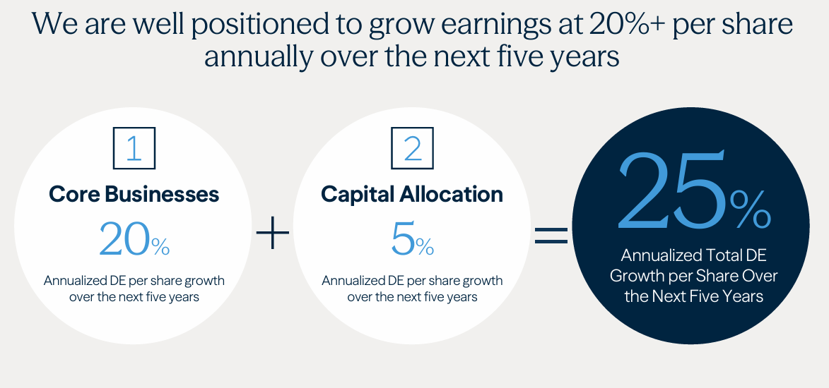 Valuation and potential returns: trading at 6.5x target 2030 distributable earnings. I expect the stock to compound at 15-20%.