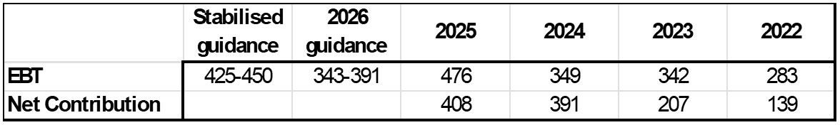 HHH give us 3 ways to think about valuing the MPC business. The first two are earnings before tax (EBT), which is a P&L measure, and MPC Net Contribution, which is a cashflow measure. To get from EBT to Net Contribution, the big adjustments are that