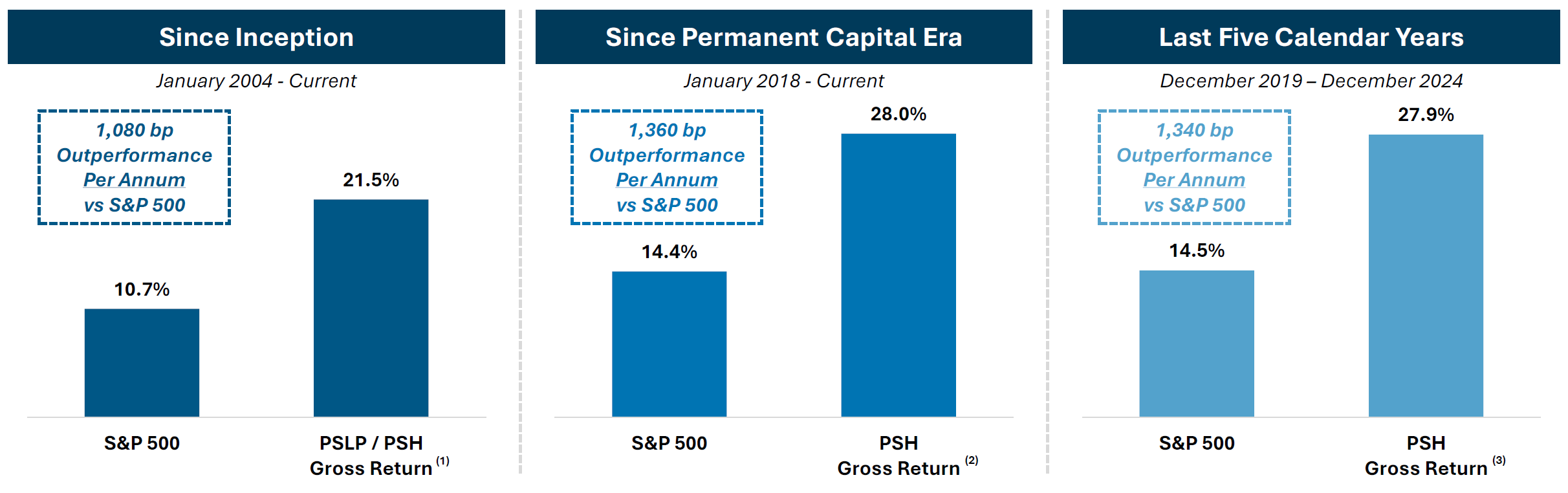 Prior attempts to “replicate Berkshire” by hedge fund managers have not worked. Pershing argue that these were structured principally as financing vehicles, designed to boost funds under management for the fund managers. By contrast, Pershing will charge HHH a fee on its market cap, but they will not charge Vantage a fee for managing its investment portfolio. Their incentive is therefore to create value, not to write additional premiums to increase float and therefore fees for the investment manager, regardless of the insurance returns. Indeed, HHH have been explicit that Vantage will not have any top-down goals for premium volumes: premiums will only be written when the business is judged to be profitable. I think there is a second difference, too. Hedge funds run long/short books, where the longs are typically high turnover and the shorts have uncapped downside that can destroy a fund if they are wrong. There is no fundamental reason why hedge funds should compound - it is all down to the skill/luck of the manager. But Pershing is no longer really a hedge fund. They invest long-only and long term in some of the largest, fastest-growing, deepest-moat companies on earth. While Pershing have an exceptional record of outperforming broader markets, a lot of the compounding simply comes from the holdings themselves.