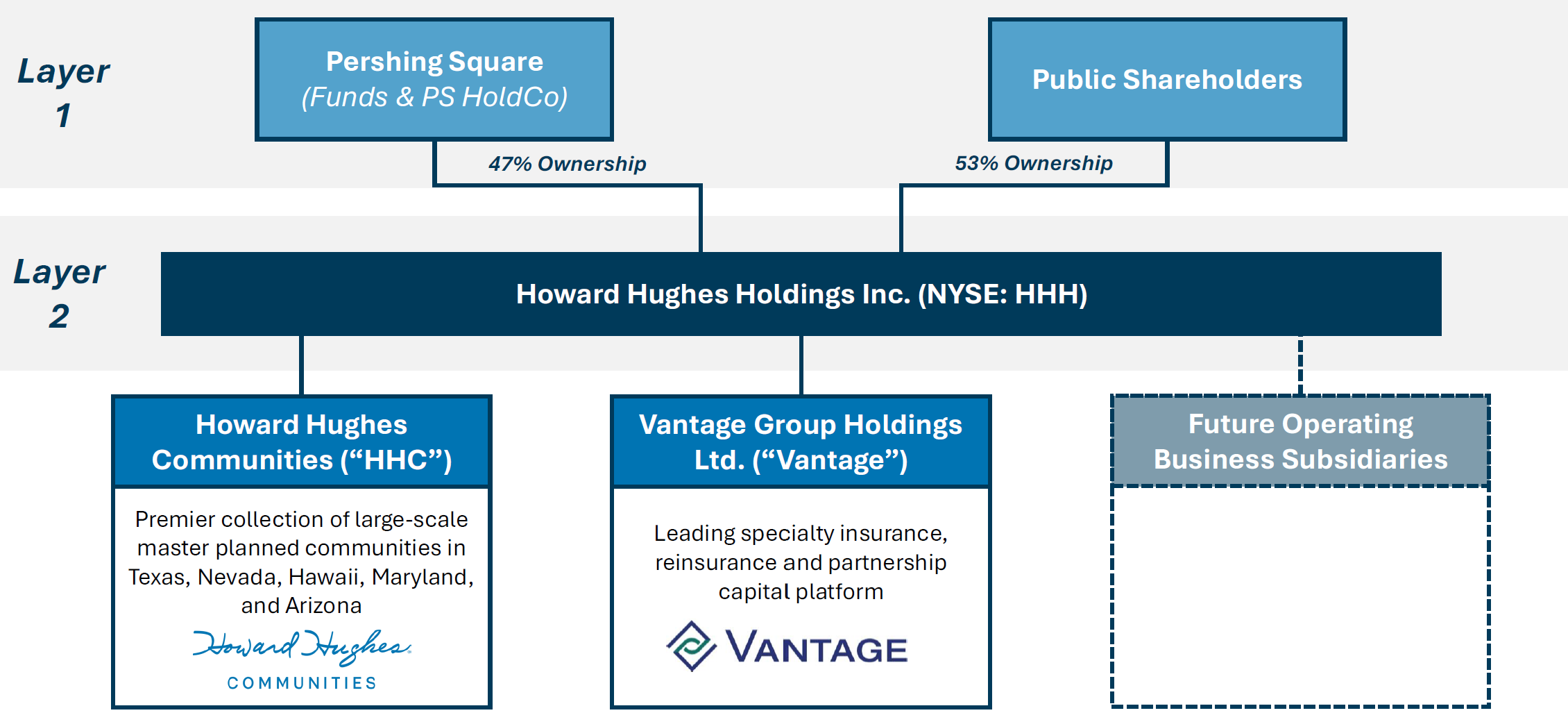 In December 2025, Howard Hughes announced the acquisition of an insurer named Vantage, which was founded in 2020 by Carlyle, Hellman & Friedman, and the founding management team.