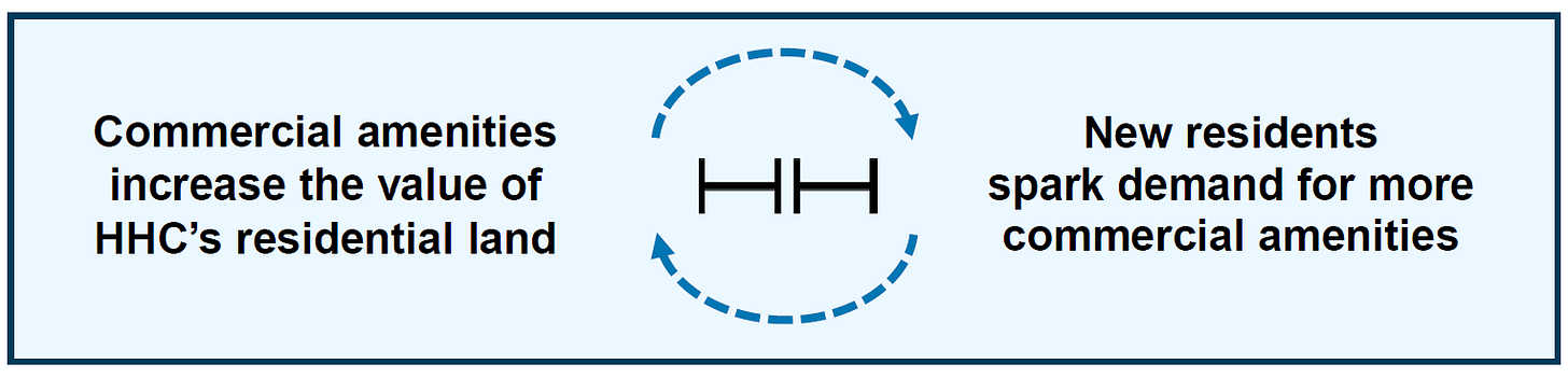 Notably, neither valuation assumes any franchise value in Operating Assets - yet it is highly likely HHH will continue to create value by building new assets.